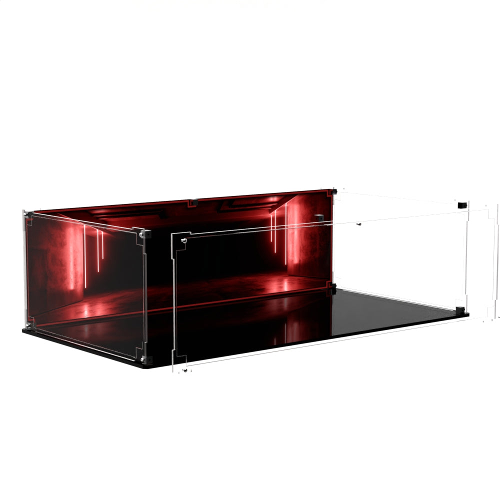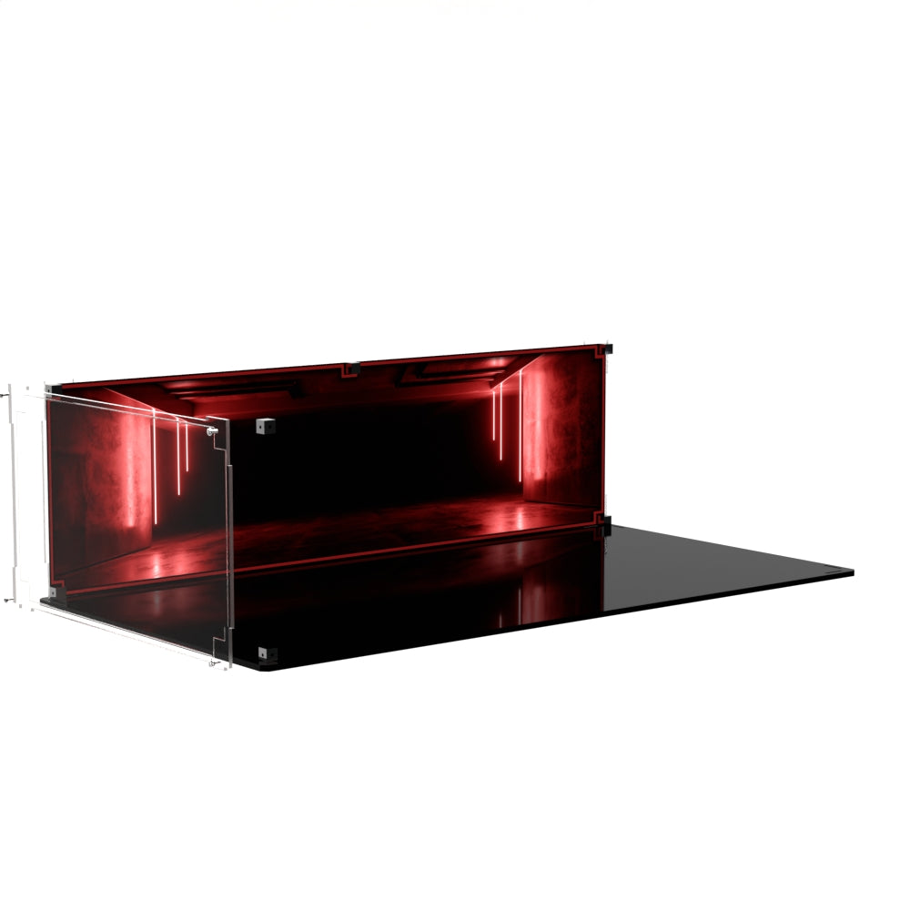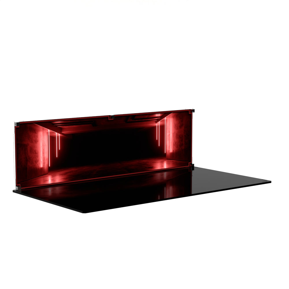 Attach the cubes with the screws to the back panel and slot it into the base. For larger cases use a second person to hold the panel in place while the second is prepared.